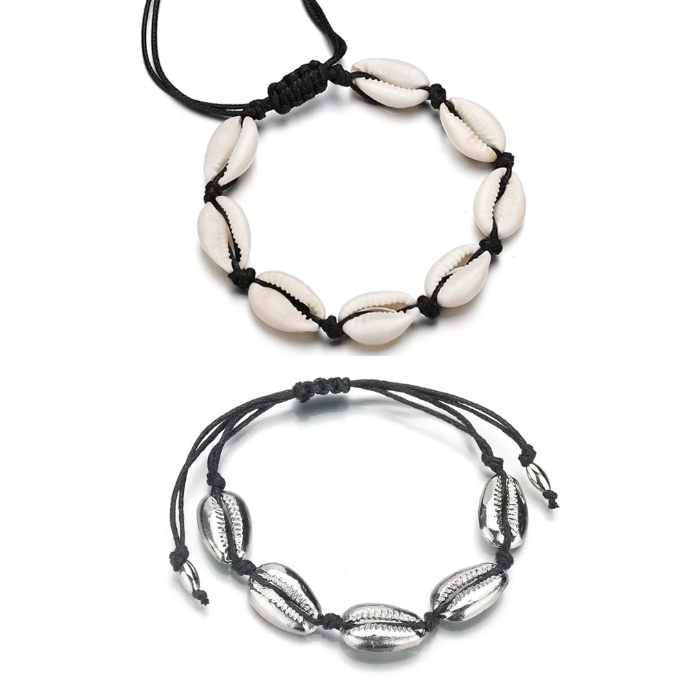 Name: Pulsera tejida de concha Natural hecha a mano para hombre y mujer, pulsera de conchas con cuentas