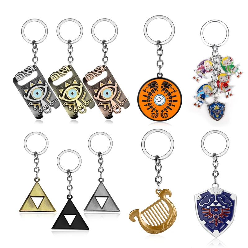 Name: Unisex llavero escudo Hylian/Sheikah pizarra clave colgante cadenas Anime baratija llavero colecciones clave anillo