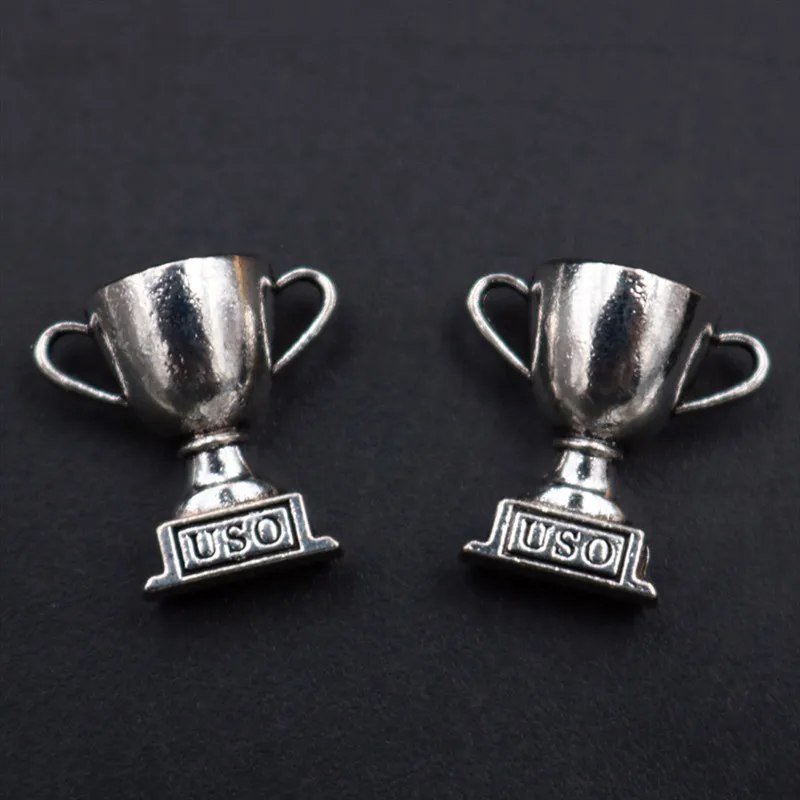Name: WKOUD-Colgante de trofeo 3D de Color plateado, 8 Uds., Vintage, pulsera, llavero, Conector de aleación de joyería de Metal, 15x15mm, A70