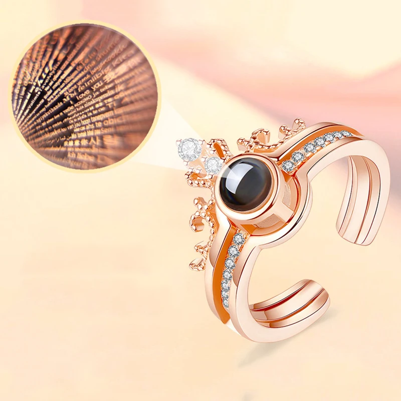 Name: Anillo de boda en oro rosa con 100 idiomas, proyección I Love You, corona Separable, memoria de amor romántico, regalo de joyería